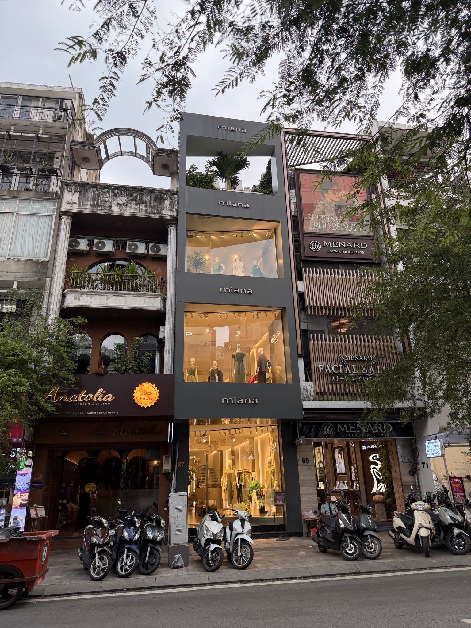 aqui em Ho Chi Minh, as fachadas dos prédios são super estreitas, legado do período colonial francês. naquela época o imposto sobre a propriedade (tipo IPTU) era cobrado com base na largura da fachada voltada para a rua, a solução para economizar foi construir as ‘tube houses’: super estreitas, mas muito profundas e com vários andares.