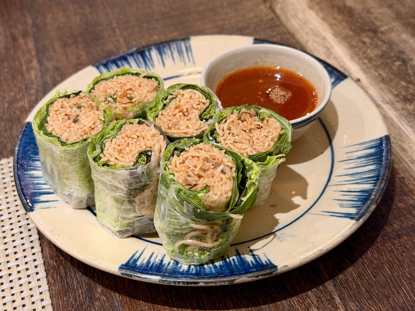 na real, sempre fico surpresa com os formatos e texturas das comidas no geral. por exemplo, tem um rolinho chamado Bì Cuốn, que é feito de pele de porco desfiada, mas outro dia pedi num restaurante vegano a versão feita de tofu… e não é que ainda assim o negócio veio com cara de qualquer coisa, menos tofu?! o molho, se você quiser procurar, é Nước Chấm.